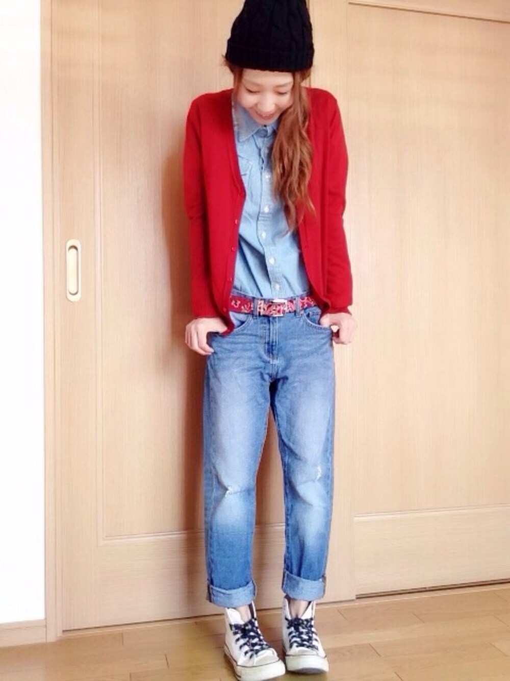 デニムオンデニム🎵 皆さんのコーディネート見ててオシャレだなぁ❤️と思ってずっとやってみたかったけど💦私には難しすぎて😂出来なかったデニムオンデニムコーディネート💦 実は数日前に撮ってて載せようか迷ったんですが。。 しばらくここに来れそうじゃないので💦💦💦💦載せちゃいます💦💦 明日のタグに乗っかって…初挑戦✨✌︎ デニム✖️デニムのみは私には似合わなかったので(இɷஇ ) 赤カーディガン羽織りました😂 今日も見てくれてありがとうございます❤️ そして全然コメント&コメントお返事行けてません。。ごめんなさい💦少しバタバタしているので。。落ち着いたら必ず行きます❤️