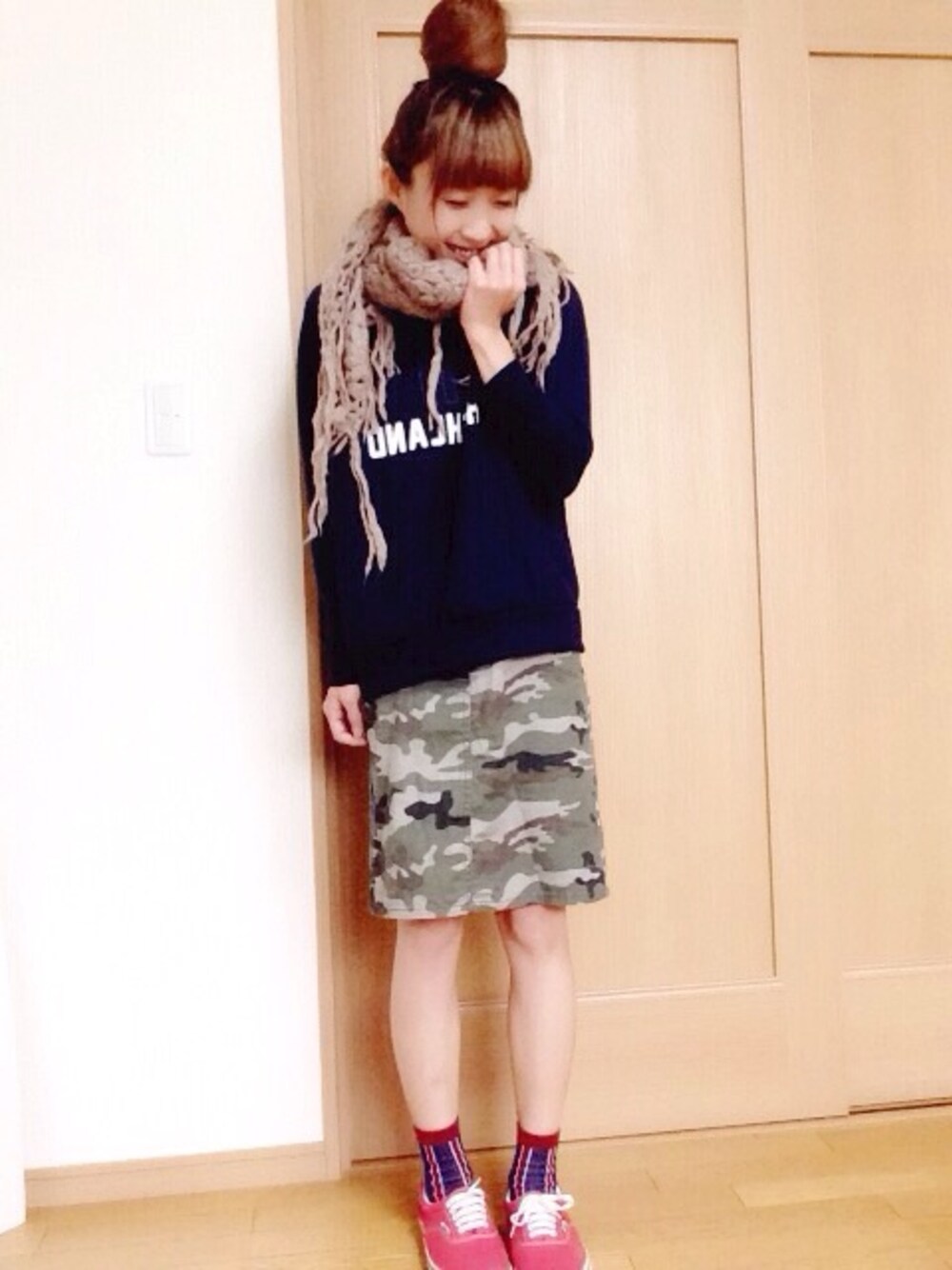 今日はカモフラスカートコーデ。 最近寒くなってきて…仕事帰りも遅いのですでにマフラーぐるぐる巻いて出勤してます😂 そして。。毎日仕事が忙しい💦仕事が終わってから研修…。。今年はなぜかwwエボラ出血熱まで勉強😩日本は大丈夫だろう!と思うんですが😂 これからノロやインフル…感染症が流行る時期なので。。色々と忙しいです😩 そんな日々を過ごしててなかなか皆さんの所にコメント行けずにごめんなさい😥💦 今月は研修や仕事が山積みなので(இɷஇ )コメントなかなか行けないと思います💦すいません💧 お返事も遅くなったりすると思うので💦コメント不要です💕 でもWEAR開ける時はしっかり皆さんのコーデ隅々まで(m9 ^ิ౪^ิ)見てますっ❤️♪(๑ᴖ◡ᴖ๑)♪ 今日も見てくれてありがとうございます❤️