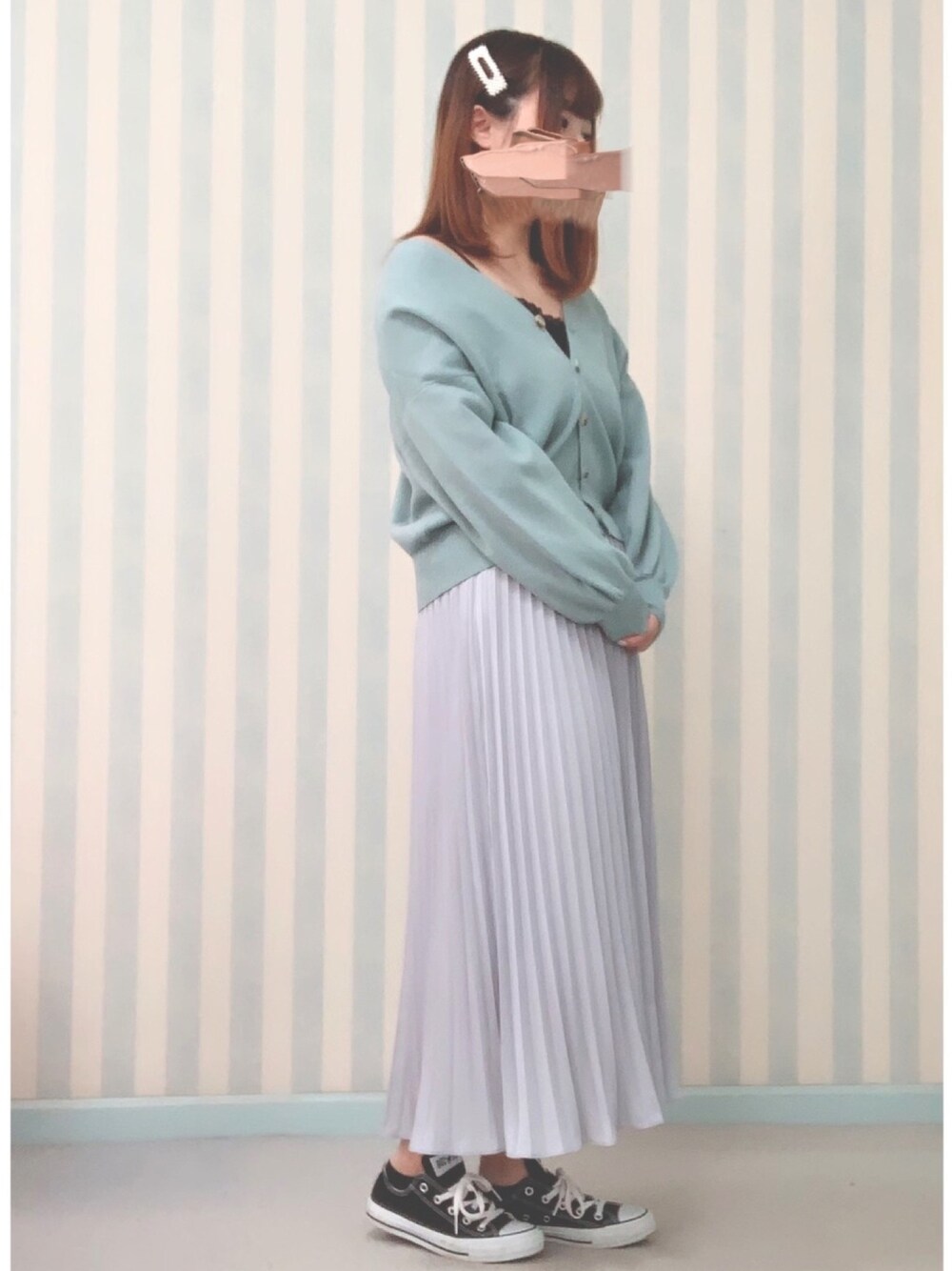 ガーリーな服にもスニーカーを👟❤︎ ピスタチオカラーのワントーンコーデです( ˊᵕˋ ) ぜひいいね👍コメント📝フォロー💐 お待ちしております⑅︎◡̈︎*