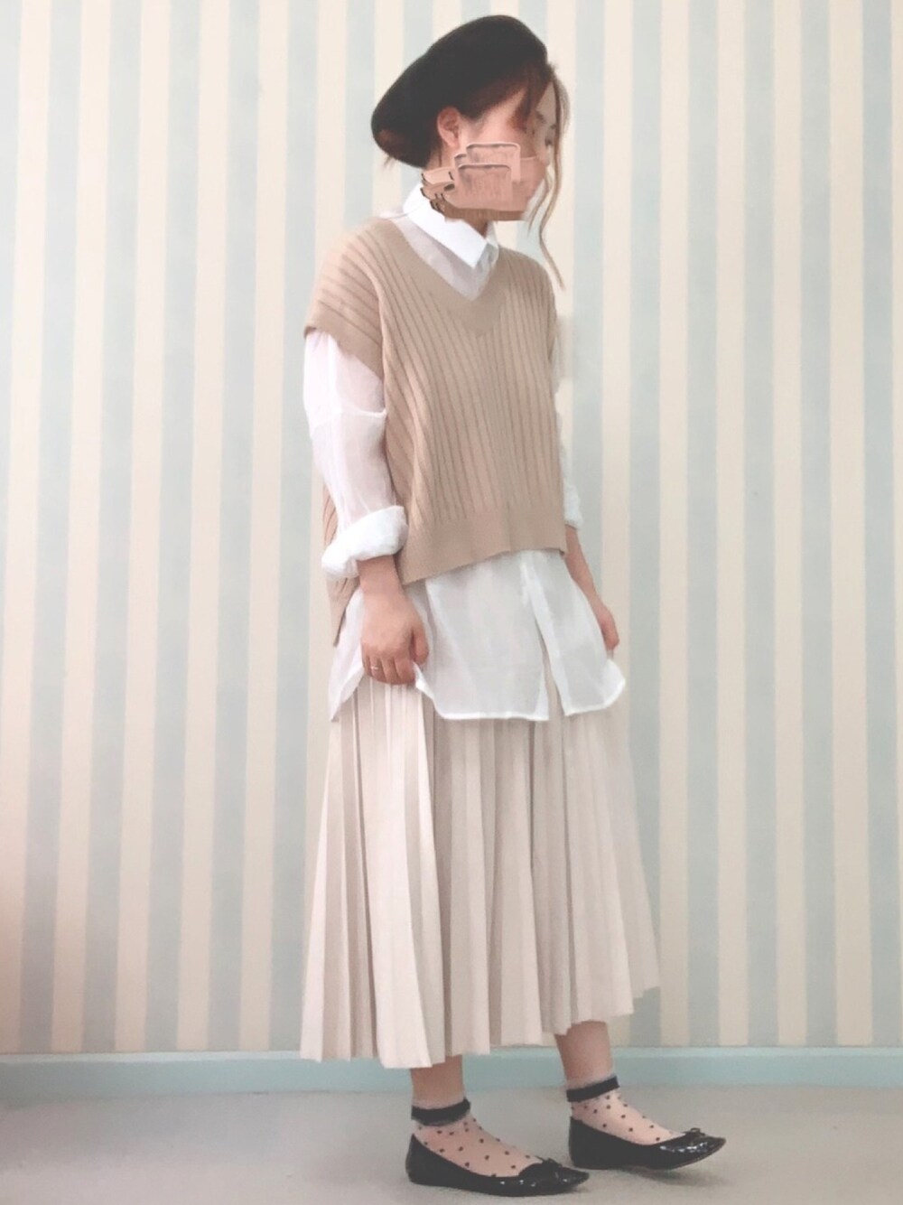 chacha*⑅︎のベスト「ワイドリブベスト」を使ったコーディネート