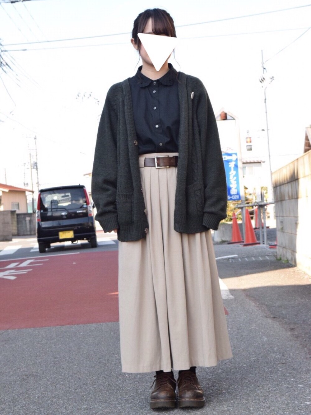 今日は全身古着の日 いいお天気☀︎ カーディガンのボタン1つどっかいった