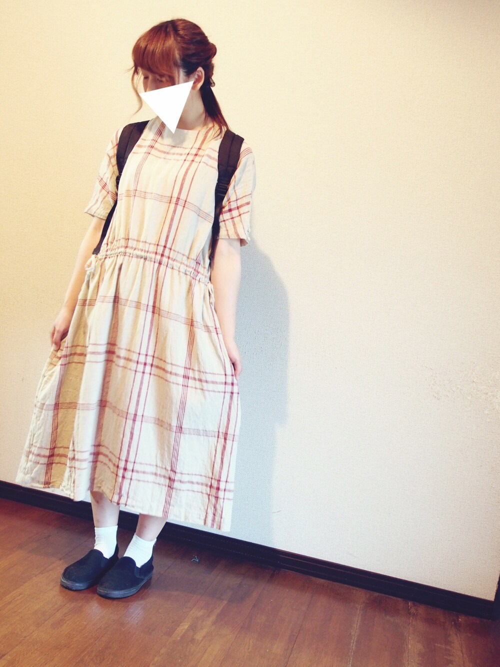 kanaのワンピース「cdc 綿麻アソート おっきなチェックワンピース」を使ったコーディネート