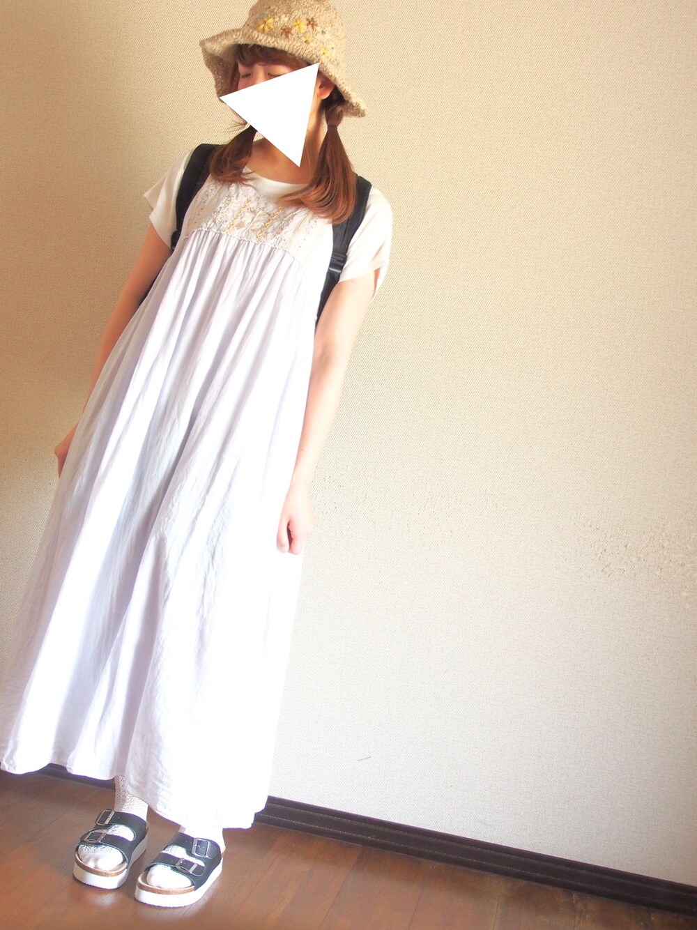 kanaのワンピース「タンク型刺繍入りワンピース」を使ったコーディネート
