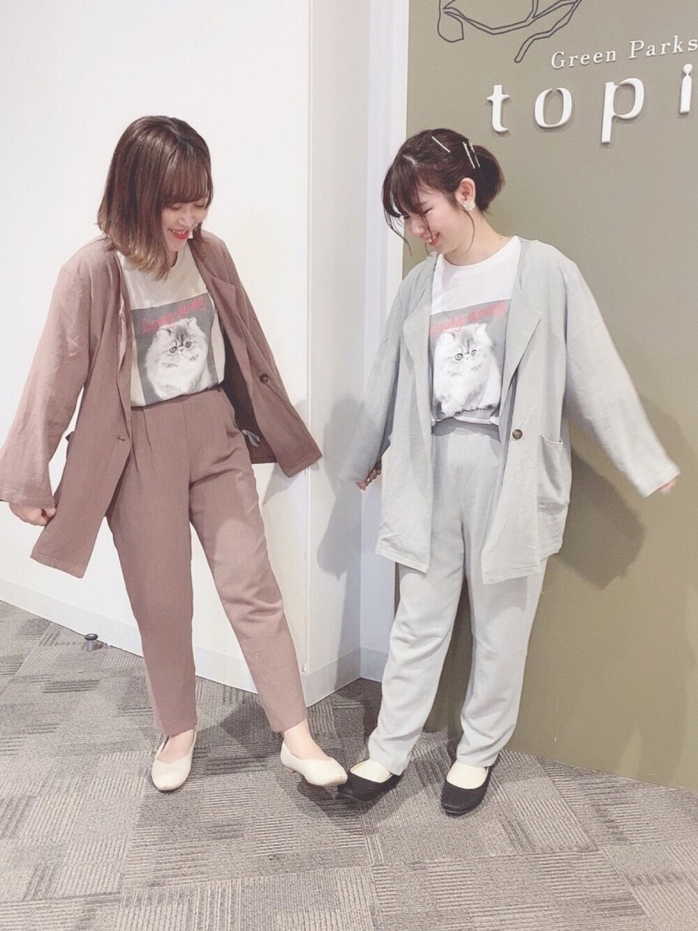 セットアップのお揃いコーデ。 ねこちゃん可愛すぎ、、、💯