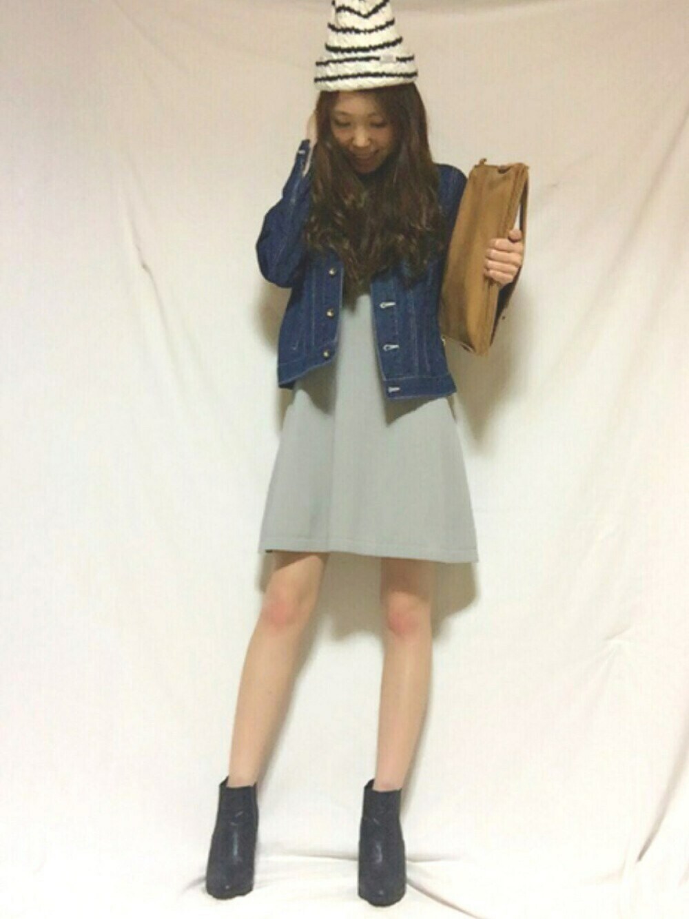 ワンピ×サイドゴアブーツ 鉄板コーデ⍢⃝ 女の子らしく⍢⃝←アラサー ニット帽はSPIRALGIRL♡ 膝が赤いね⍢⃝笑