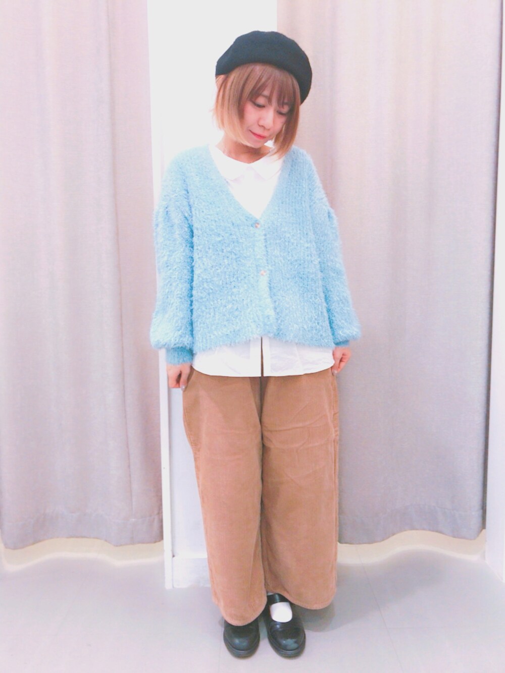 珍しくサックスとか着てみた❄️ パンツはLEEのコーデュロイワイドパンツ🐒 秋になるとやりたくなるコーデ🙆🙆🙆