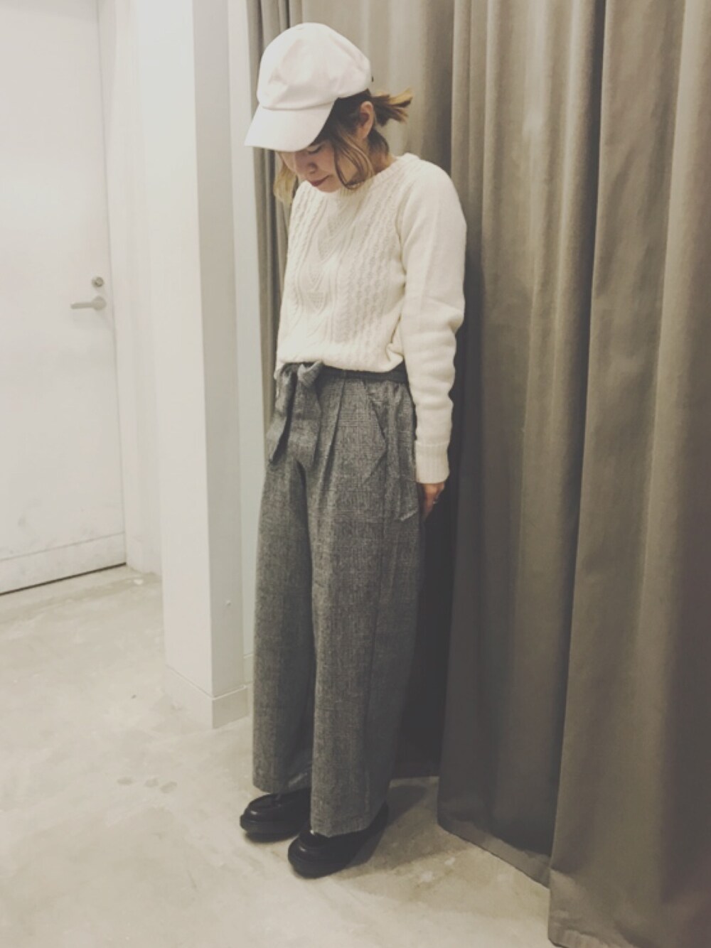 店頭着用コーデ🐰 グレンチェックのワイドパンツはブラウンと迷ったけど、 前回ブラウンのグレンチェックワイドパンツ買ったので今回はグレーにしました❣️ ※家帰ったら結局グレーもあったんですけどね笑 アパレルあるあるですね(笑) ケーブルニットは厚めの素材でモコモコ感が可愛い😍 あったかいし、プチプラなのでおすすめです🍂