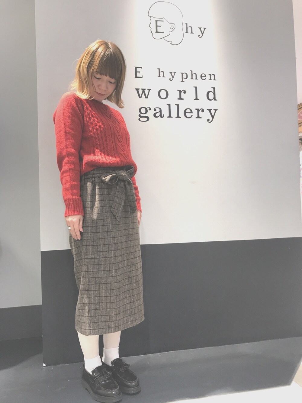 店頭着用コーデ💭 赤ニット×グレンチェックペンシルスカート🍅🍅🍅 古着風に白タイツで合わせてみました🤤