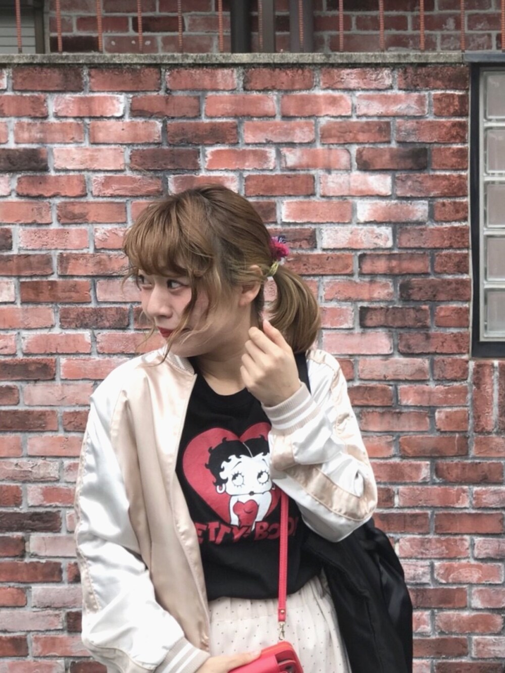 Bettyクローズアップ😍❤️❤️❤️ Tシャツの赤ハート♥️がポイントなので、 小物も赤で揃えてます📌 羽織の中に見えるだけでキュート🍭