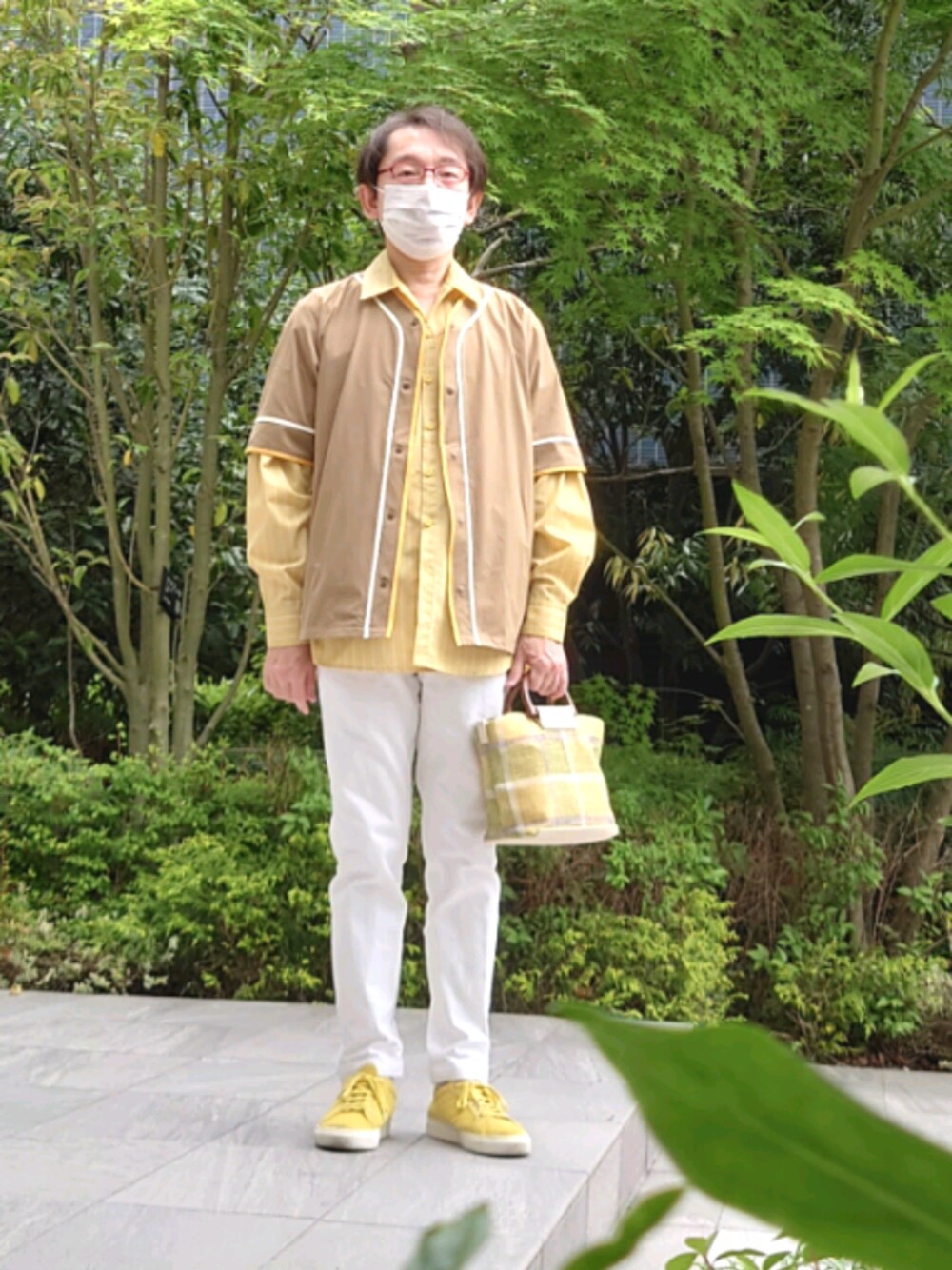 DESCENTEのユニフォームみたいのを羽織りました。中は、BEAMSのシャツです。 なんか、変化がないから、羽織ってみました。 パンツは40ct&525です。 今日は、午前中は晴れてましたが、午後は曇りです。