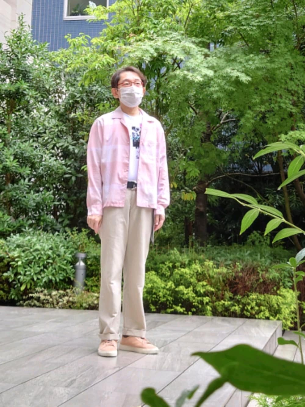 BLACK LABELの開襟シャツです。 中はTAKEO KIKUCHIのTシャツです。見えてませんが、ピンクと緑と黄色のベルトしてます。 今日は、午前中すごく雨が降ってて、大丈夫かな?と思ったくらいでしたが、昼頃にやみました。涼しいです。 昨夜、衝動的にピンクのシャツを、Milkboyのサイトで買いました。(2個) なので、余韻でピンクのシャツにしました。