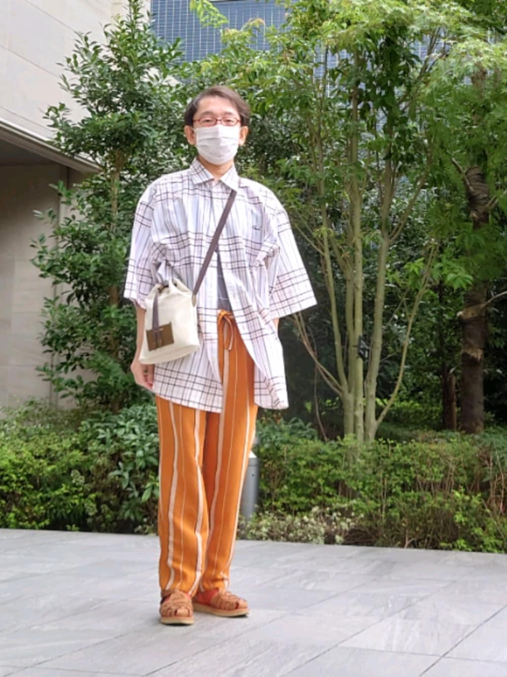 サントニブンノイチで買った古着のシャツです。 オレンジとグレーの格子柄なので、中はグレーのウィンドウペインのTシャツで、パンツはアバハウスのにしました。この夏着る機会がなかったシリーズです。 古着のシャツは3XLで、バカでかいです。 気温が18度位にならないとジャケット着る気がしないので、暫くは中途半端な感じのカッコです。 このシャツはイケメン高校生コンテストの2016年度関西地区準優勝の尚人くんから買いました。2017年度グランプリの高橋文哉君に似てカワイイです。しばらく会ってないです。 バッグだけTAKEO KIKUCHIです。