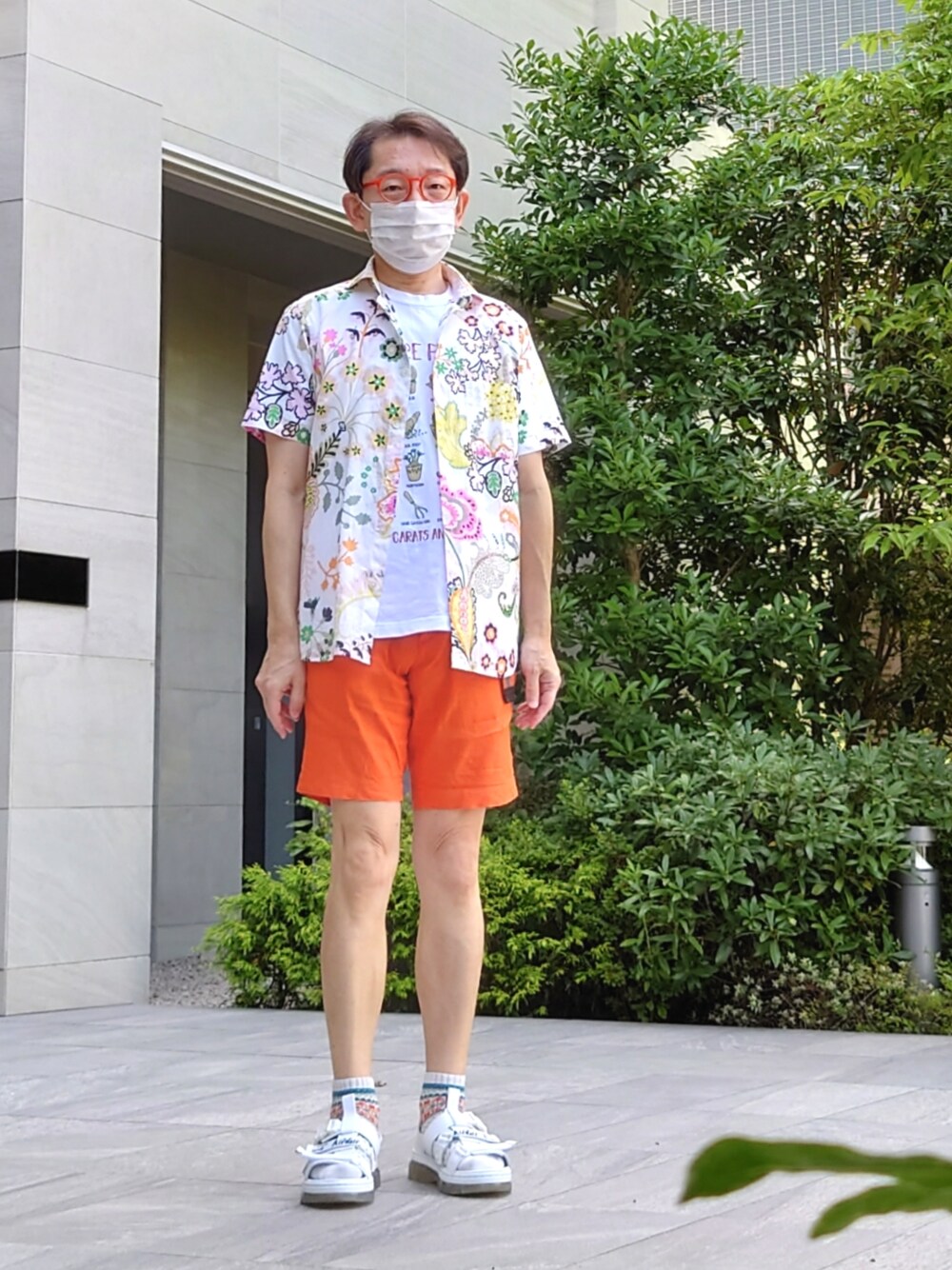 40ct&525の少し前のLiberty生地のシャツです。かなり薄いので、下に着てるものの色が透けます。中のTシャツは、40ctの22SSのヘビロテしてるのです。パンツはアーバンリサーチサニーレーベルのフワフワの薄いのです。サンダルはDr.Martens、ソックスはChupです。ベルトはTAKEO KIKUCHIです。今日も暑いです。