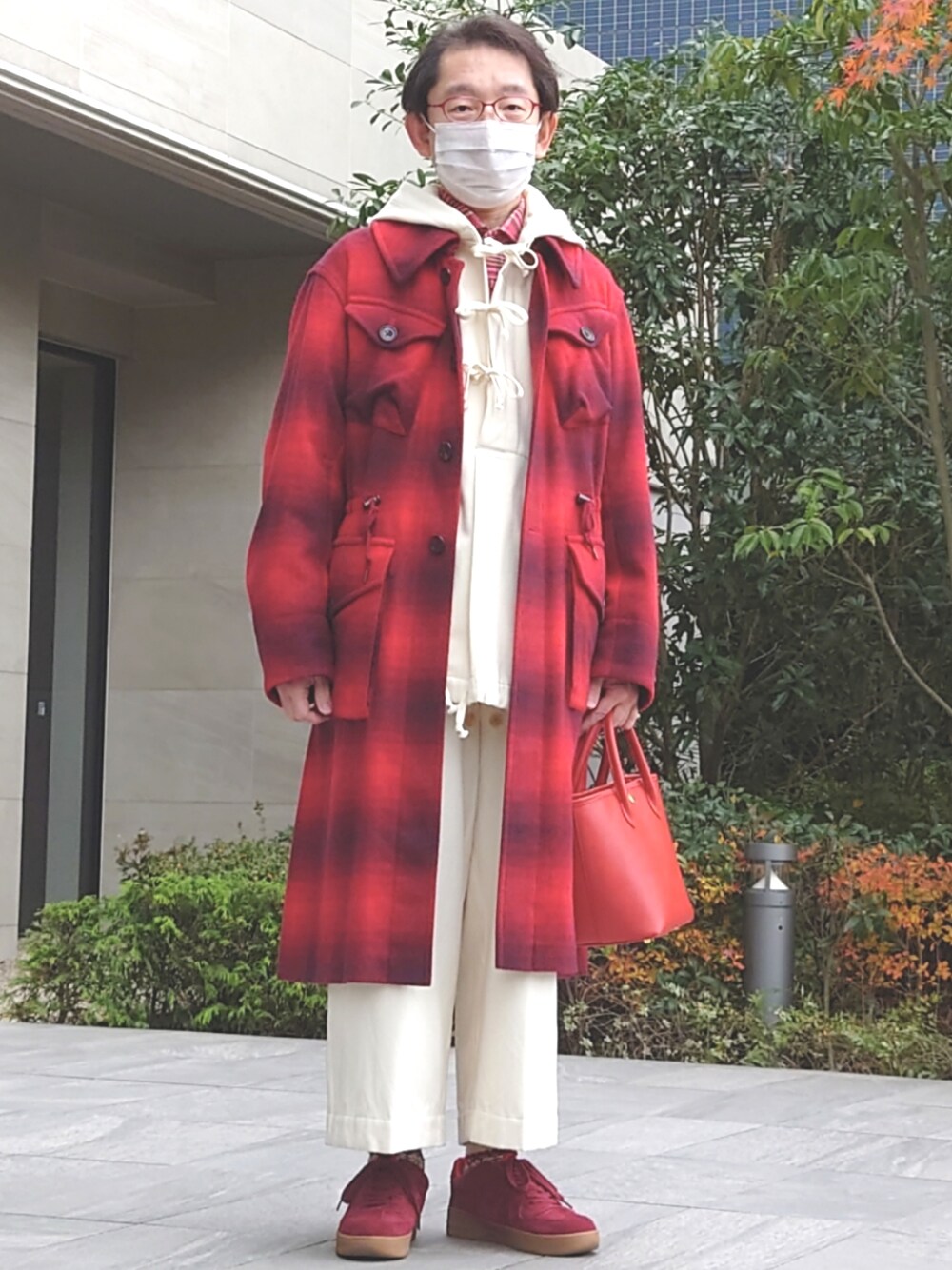 40ct&525の少し前のパーカーとグルカパンツのセットアップです。コートは40ct&525の22AWです。一番中のラウンドカラーのクルミボタンのネルシャツと靴も40ctです。ソックスはサンタクロースので、Chupです。バッグはTAKEO KIKUCHIのオーダーバッグです。 今日は、カフェコムサのショートケーキの日なので、それをイメージしました。このセットアップは、年に1〜2回しか着るタイミングがないです。