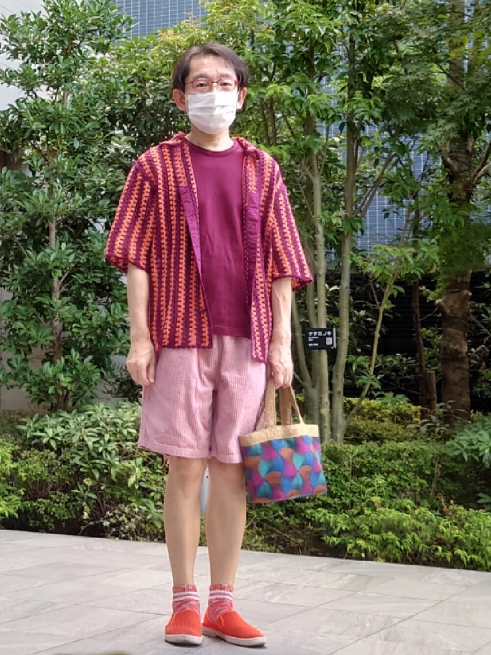 ちゃばこのバッグ「 ジュート & アフリカンプリント バッグ シアン」を使ったコーディネート