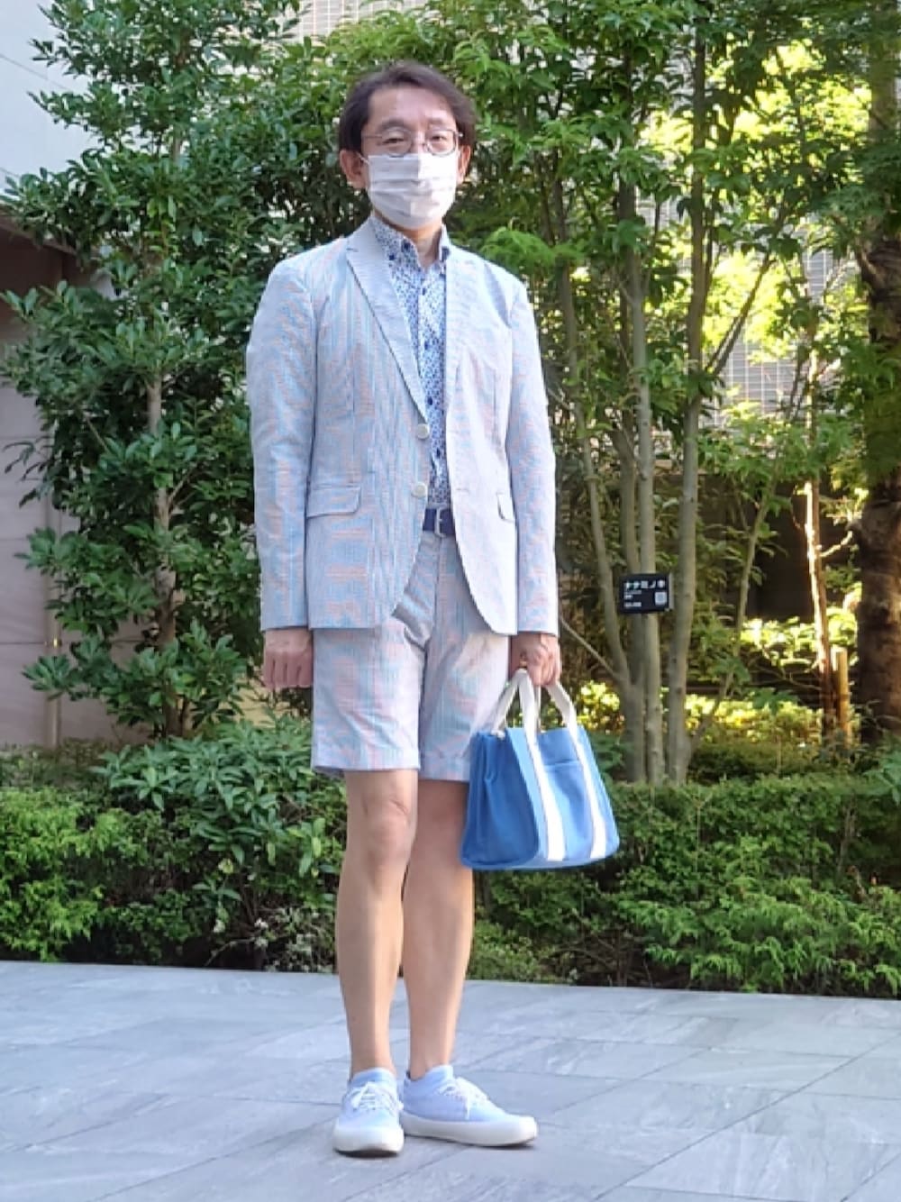 水色のストライプでまとめました。シアサッカーのセットアップは、昔あったBOYCOTTのです。中のフルオープンポロシャツはTAKEO KIKUCHIのオーダーシャツです。ボタンダウンでボタンは濃い青です。確か、昔池袋マルイTAKEO KIKUCHIで作ったと思います。靴はAdam et Rope、ベルトはGAP、ソックスはTAKEO KIKUCHI、バッグはSHOO LA RUEです。今日も暑いのですが、会社に郵便を取りに行くので、ジャケット着てみました。暑いです。
