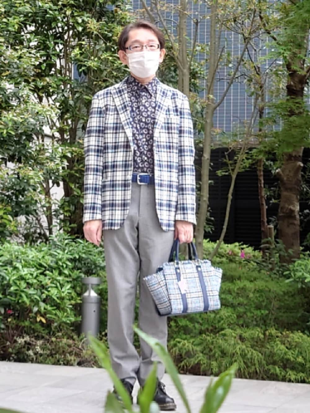 BLACK LABELのジャケットを、40ct&525のカタログ表紙になったシャツと合わせました。ALBIATEの生地のシャツです。パンツはTAKEO KIKUCHI、ベルトはGAP、靴はDr.Martensです。 これは一昨日でさ。載せ忘れました。雨だったので、こんな感じです。
