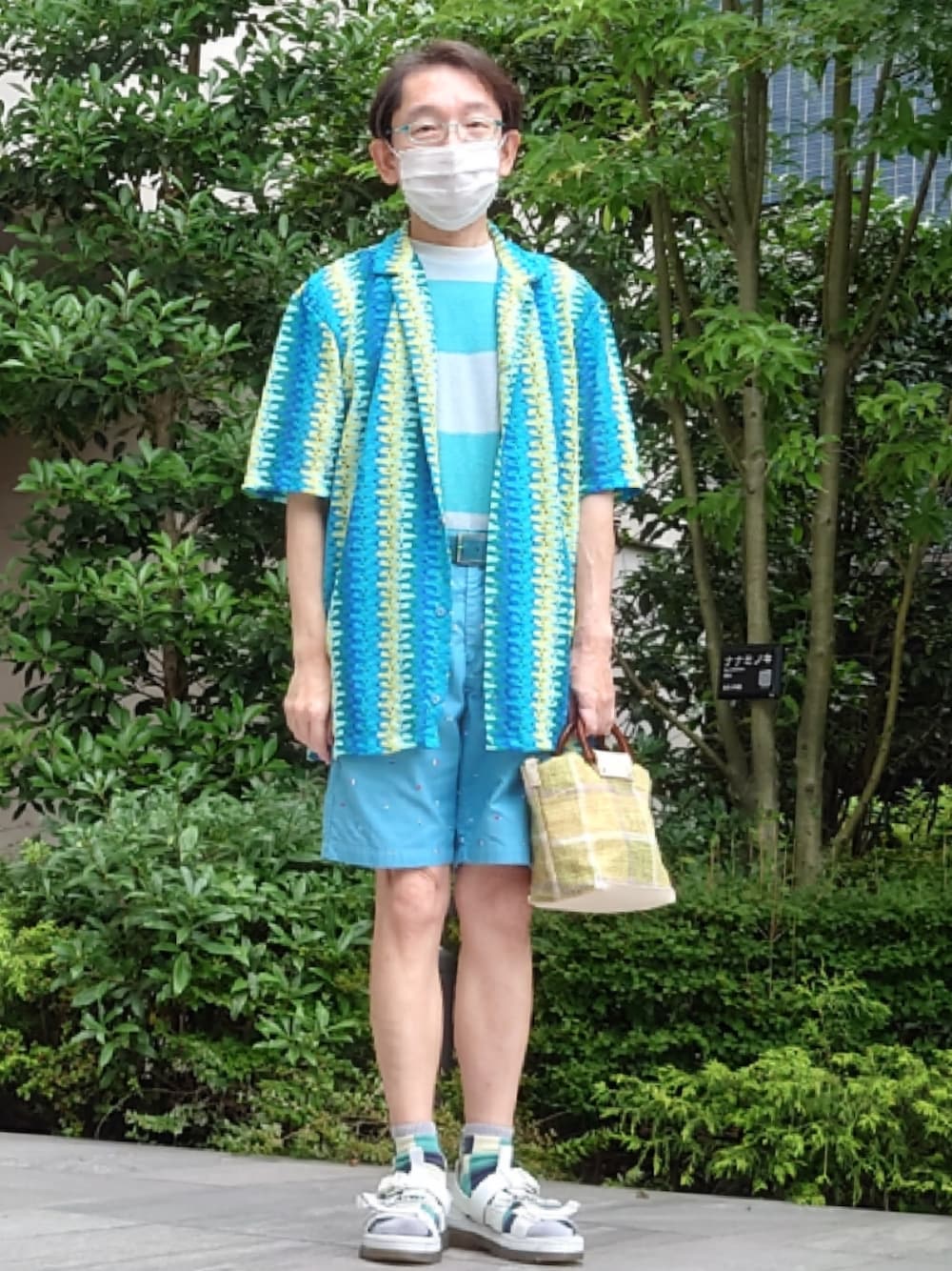 ZARAシアーシャツをパイル地のボーダーシャツに羽織りました。パンツはCoen、ベルトはLACOSTE、ソックスはTabio、サンダルはDr.Martensです。このZARAのシャツは、セールで売ってて、ちょーお気に入りです。色がきれいです。コーエンのショーツは、小さい万国旗が描いてあってカワイイです。今日は曇りでしたが暑かったです。ここのところ忙しくてこのカッコでも、結局近所のコンビニにしか行けず、街に出てないので残念です。