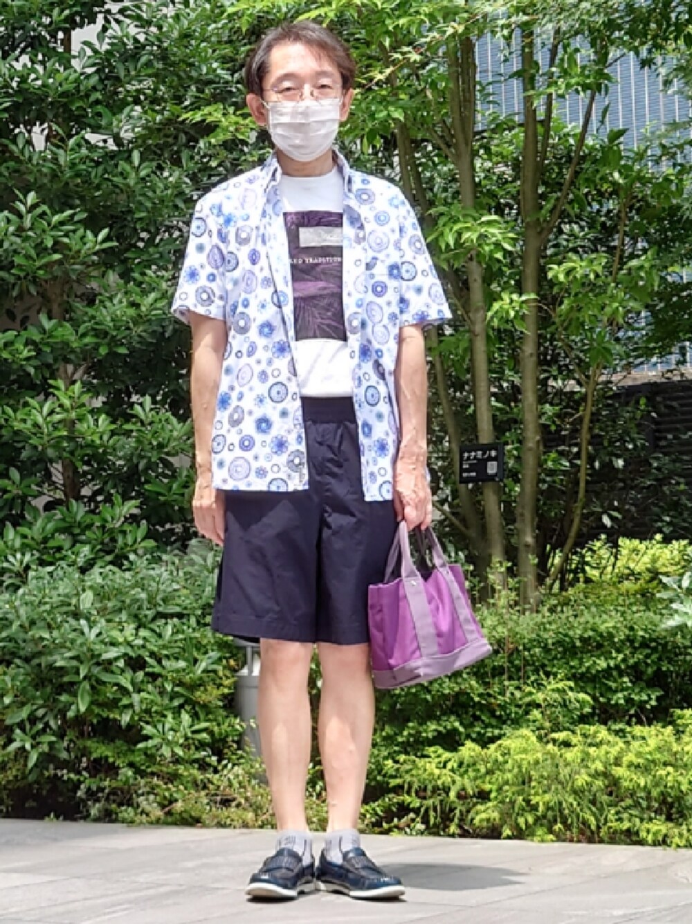 40ct&525のLEGGIUNOの幾何学模様シャツです。中のTシャツは、24SSのTAKEO KIKUCHIのです。パンツは40ct&525ので、右前に40ctの大きい刺繍が入ってます。ソックスはTAKEO KIKUCHI、靴はCAMINANDです。 今日は、カフェコムサ銀座で、七夕ケーキの試食会があるので、七夕をイメージして宇宙っぽいカッコにしました。どのへんが宇宙か分からないですが、そんな感じです。