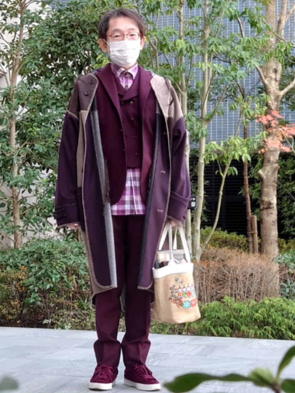 40ct&525の少し前の有楽町マルイTAKEO KIKUCHI別注の3Pセットアップです。ベストが特徴的で、襟付きダブルです。中のシャツはオンワード樫山、ポンチョコートは、Paul Smith Collectionです。これはかなりのお気に入りの服です。これは一昨日です。久しぶりの出社日だったので、これにしました。