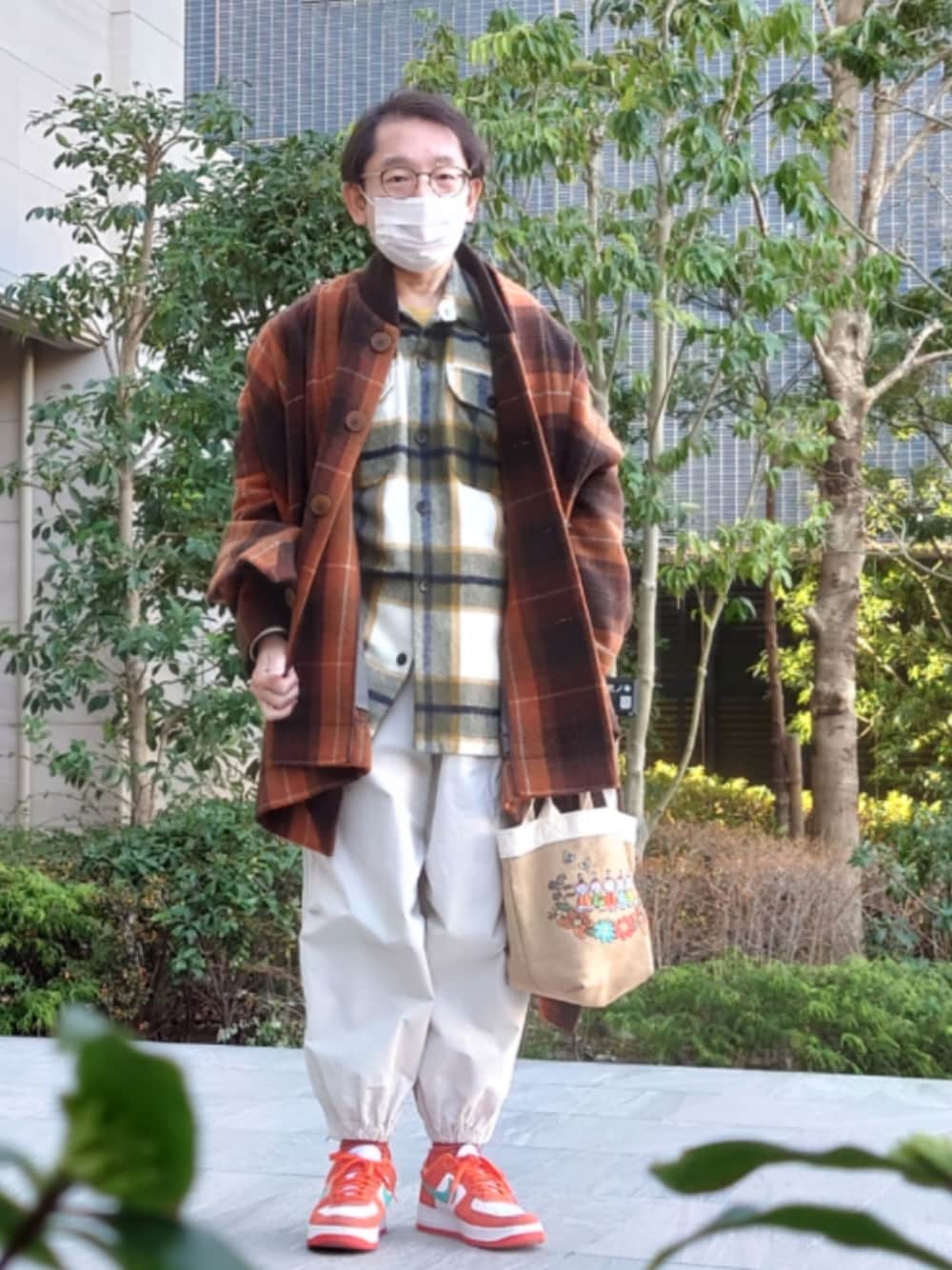 vivienne westwoodのコートで、マフラー部分と毛布みたいのが縫い付けられてます。少し前のです。中のCPOシャツは起毛素材でZARAです。その中は40ct&525のロンTです。パンツは40ct&525のワイドパンツです。靴は40ctのAF-1です。 今日は久しぶりに東急プラザ銀座の地下二階の定食屋さんに行きました。帰りに有楽町マルイで、ABAHOUSEにカワイイ水色のスニーカーがあって、つい買ってしまいました。