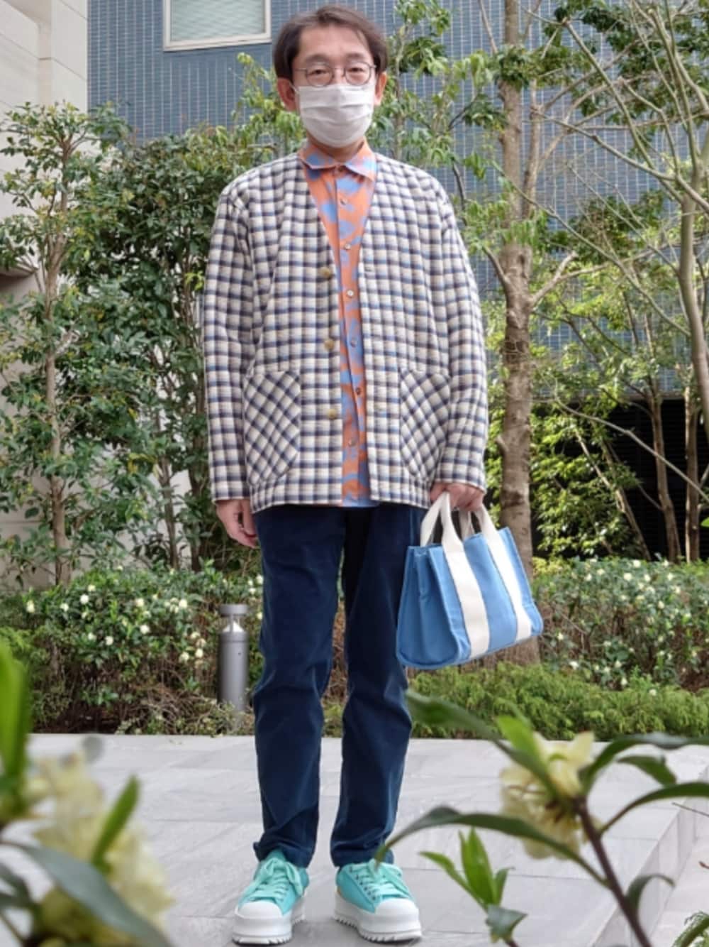 40ct&525のノーカラージャケットです。中のオレンジのシャツは、Paul Smith Collection、パンツはBeauty &Youth、ソックスはTAKEO KIKUCHI、靴はabahouseのalfredoBANNISTER MASTER KICKS for canvasです。 今日は忙しかったので、ずっと家にいました。