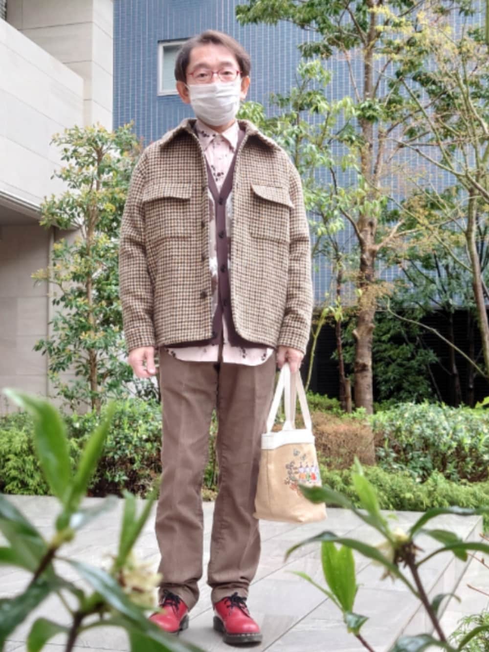 24AWの40ct&525ガンクラブチェックツイードブルゾンです。中のカーディガンはtk.TAKEO KIKUCHIの25SSのです。シャツはPaul Smithの店舗限定の去年のです。コーデュロイパンツ、ベルト、ソックスはTAKEO KIKUCHI、靴はDr.Martensです。 今日は品川に用があるので、帰りにオープンした高輪ゲートウェイシティを見に行く予定。