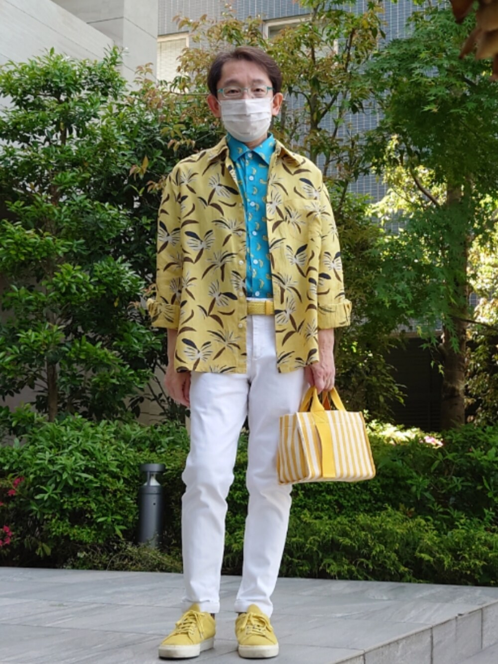 バナナのシャツです。羽織っているのは、40ct&525のAlbiniのリネンシャツです。中のバナナ柄のシャツは半袖で、ネットで買ったのです。ベルトは先週新宿高島屋TAKEO KIKUCHIで買った、TAKEO KIKUCHIのです。パンツは40ct&525のホワイトデニム、ソックスはTAKEO KIKUCHI、靴はabahouseです。 今日はカフェコムサのミルクレープの日で、バナナのミルクレープなので、バナナでまとめました。