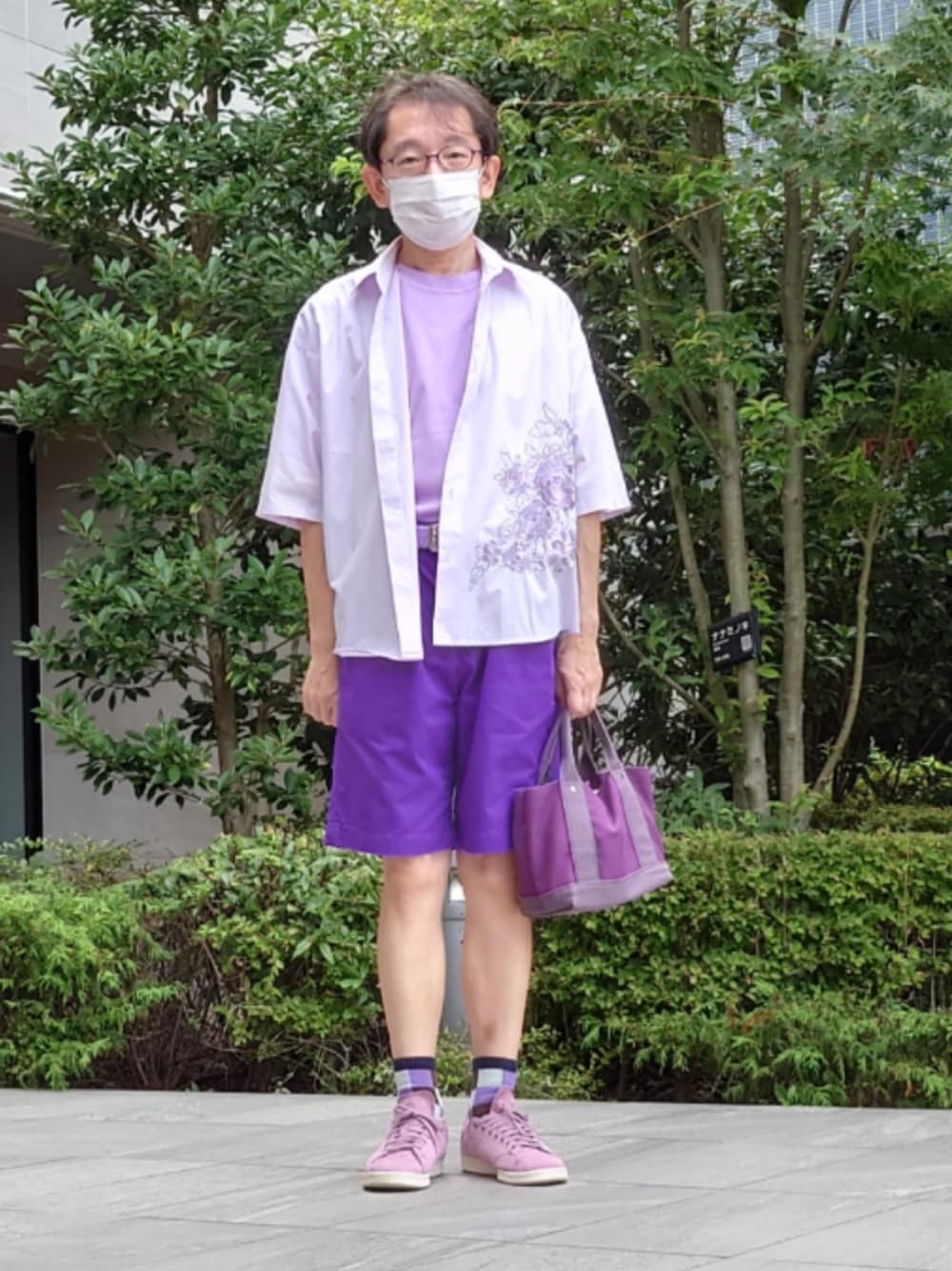 tk.TAKEO KIKUCHI刺繍シャツです。中のTシャツはNANO Universeで買ったYonetomiのです。パンツはBROWNY、ソックスはTabio、靴はadidasスタン・スミスです。 何となくパープルでまとめてみました。今日は忙しくて待ちにはいけませんでした。ワオンカードをなくしたことに気づいて、無効化と再発行依頼をしました。どこで無くしたんだろう???