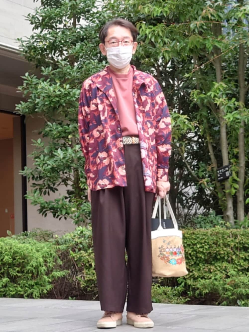 40ct&525 LIBERTYブルゾン型シャツです。エリが丸くて大きいです。中のカットソーはTAKEO KIKUCHI、パンツはtk.TAKEO KIKUCHI、ベルトはTAKEO KIKUCHI、ソックスはPaul Smith、靴はabahouseです。 これは昨日です。少し気温が下がったので、こんな感じです。出社日だったので、ぱそこん持ってます。