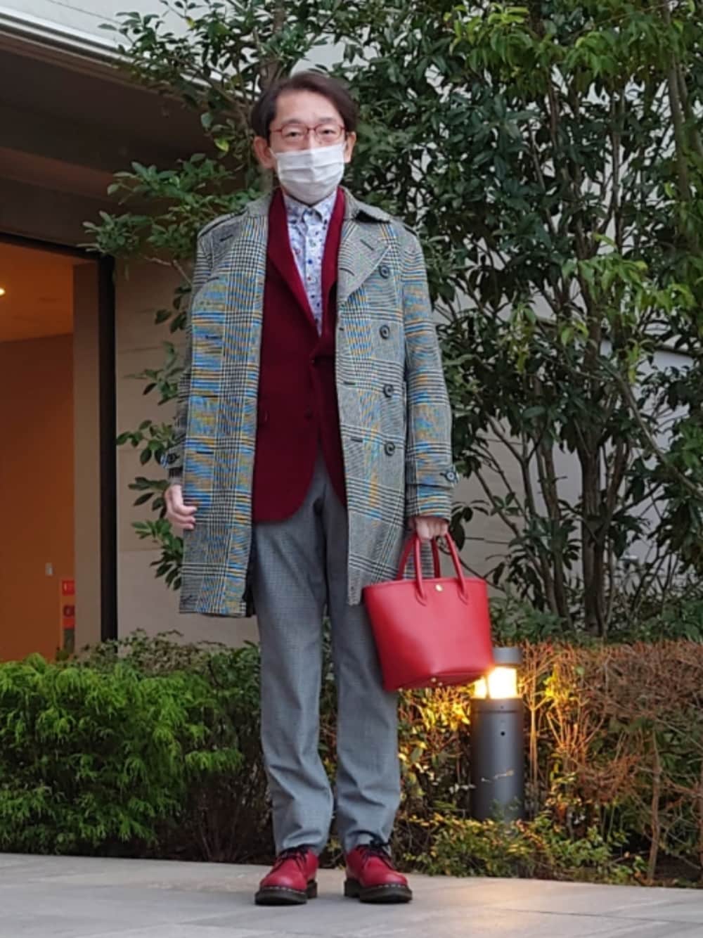 BLACK LABELグレンチェックトレンチコートです。中は、40ct&525のベロアジャケットと、40ctのLEGGIUNO生地のボタン柄のボタンダウンシャツです。パンツは細かい千鳥チェックのでTAKEO KIKUCHIです。ソックスは40ct、靴はDr.Martensです。ベルトは赤でLACOSTE、バッグはTAKEO KIKUCHIのオーダーバッグです。 最初、日比谷シャンテにケーキを食べに行こうと思ったのですが、遅くなっちゃったし、雪が降るとか言ってたので、あきらめて家にいました。