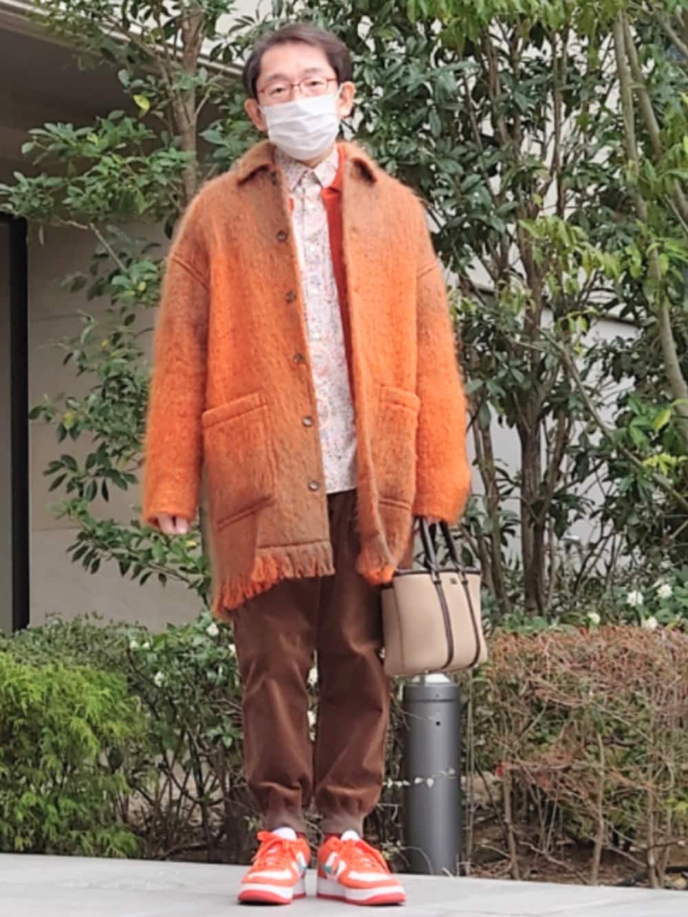 THROWシャギーコートです。これは一昨日です。 中の強いオレンジのカーディガンはPaul Smith、その中の星柄のシャツは40ct&525のLIBERTYです。パンツはコーデュロイで40ct、靴も40ctのAF-1です。ソックスはPaul Smith、バッグはTAKEO KIKUCHIです。 この日は、セイルパーク豊洲のフルーツピークスで、いちごパフェを食べました。EBiDANっぽいM君もいて、すごく可愛かったです。