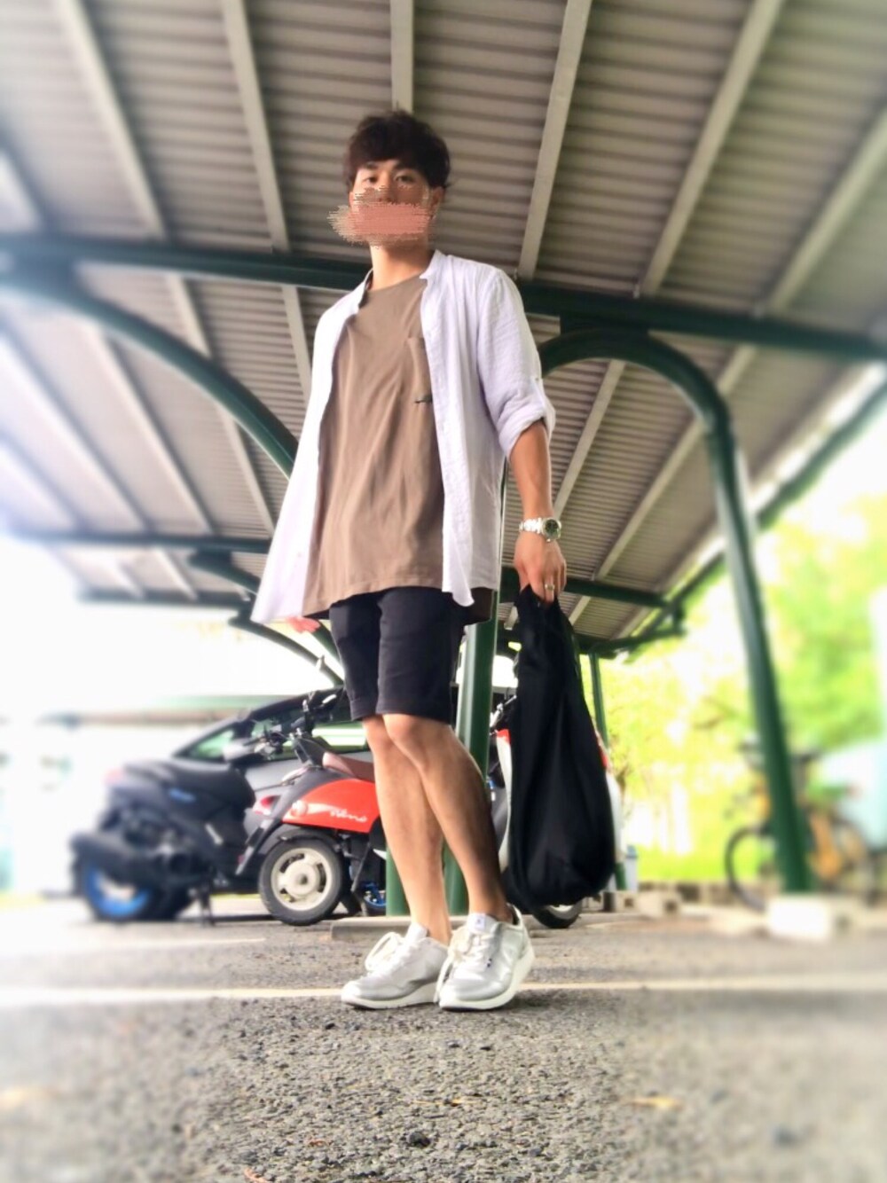 短パンに白シャツを合わせた夏のイベントコーデ🍉 シルバースニーカー可愛いくてお気に入りなのです^ ^