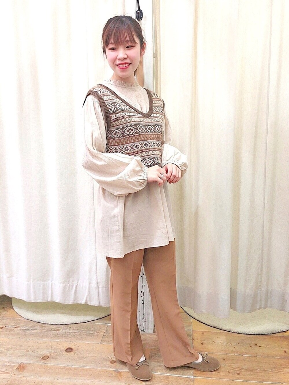 秋コーデ🧸 センタープレスの綺麗目なパンツに ニットベストを合わせてちょいレトロ感をプラス♡ トーンをブラウンで統一することで一気に秋感が!笑 全身ehka sopo☀︎
