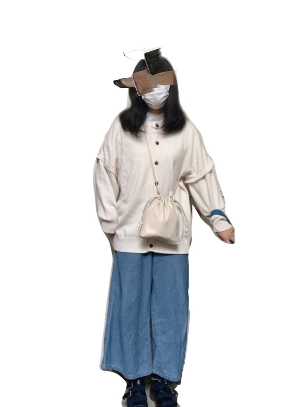 ちゃちゃむちのショルダーバッグ「巾着 バッグ リバーシブル 4way omom×mimi toujours」を使ったコーディネート