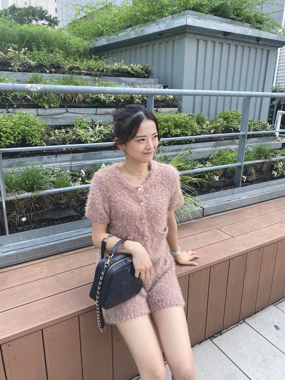 さきのショルダーバッグ「スクエアキルトデイジーパッチ 2WAYショルダー」を使ったコーディネート