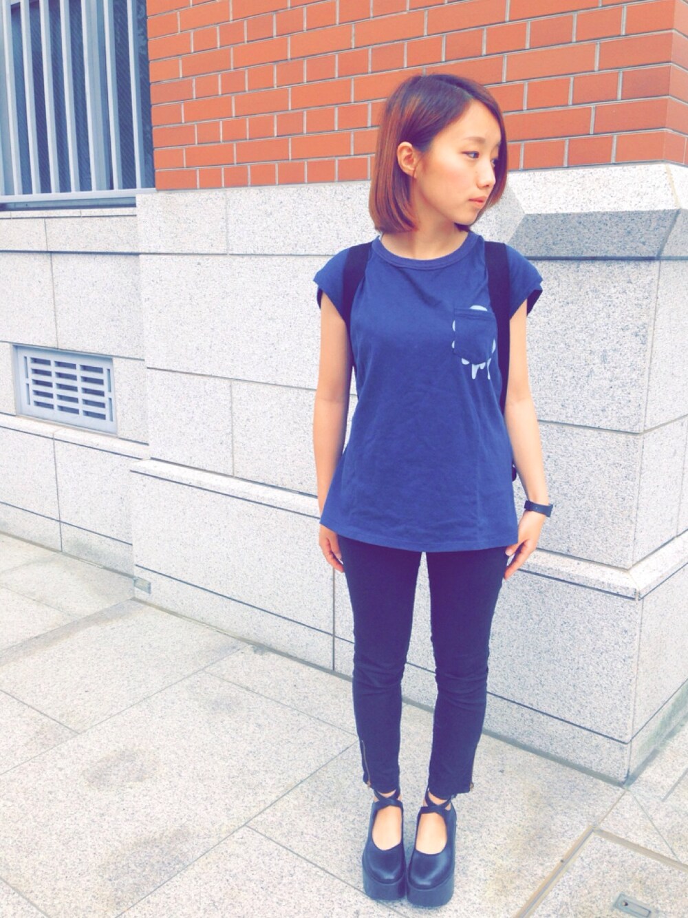 今日も撮ってもらいました📷✨ トップスのポケットのプリントが めちゃ可愛い!! 実は中に、don't you bring me downって 書いてあるんです👏💓👏💓