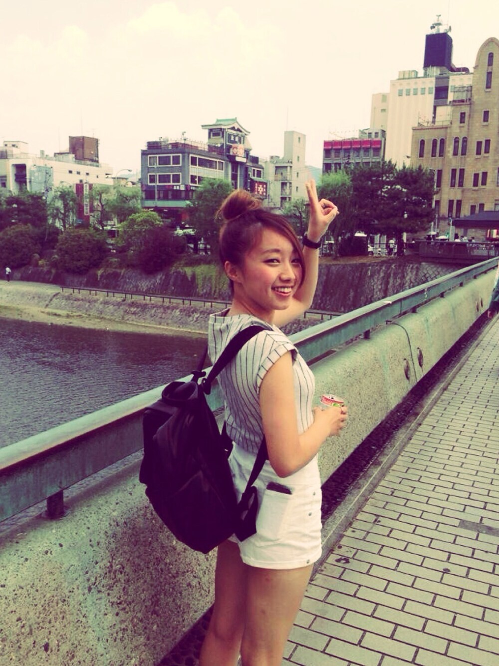 sightseeing coodinate! 京都の四条大橋にて📷✨ たくさん歩けるように スニーカーにしました👟