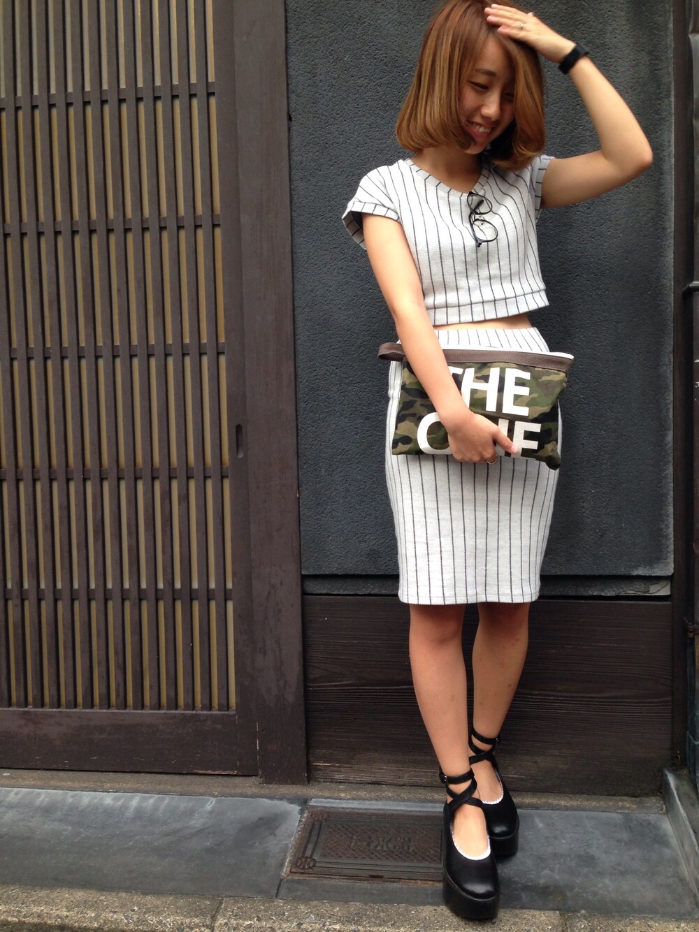 こんにちは🌞毎日暑いですね🍹😲🍉 誕生日の日のcoodinate 京都の六角御幸町あたりで撮りました💓 本日のピックアップタグ! クラッチバッグはKBF BOXで GET! カモフラが気になってるので スパイスとしてチョイ足し🍍🌟