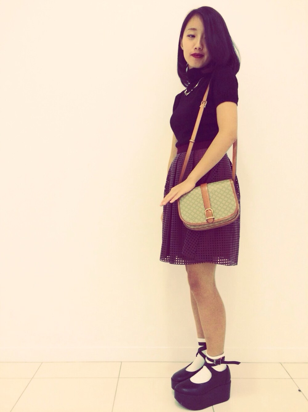 髪色を黒×紫にチェンジ! お気に入りの色💇💇 今日は母のタンスから勝手に セリーヌのカバン持ってきて レトロ感を出しました。笑 新しくmade in HEAVENのスカート おろして気分ルンルンです😆💓 saveしてくれる方ありがとうございます