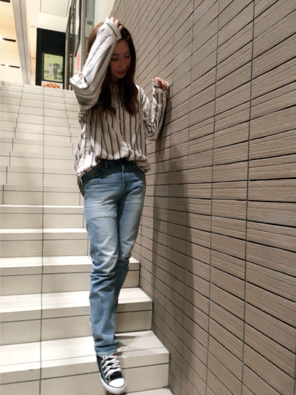 本日もカルフォルニアガールです✌️ ゆったりにゆったりの楽チンコーデDAY 何にでも合わせられるコンバースが本当に大好きです👟 ※毎日履いてます。笑 今日は、仕事終わりにパシャリ…笑