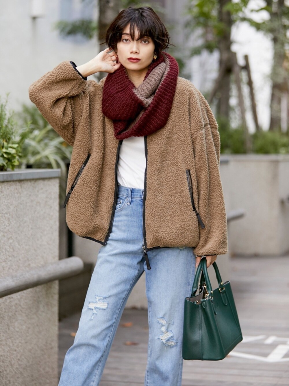 Chaco closet officialのブルゾン「2wayノーカラー ビックシルエットリバーシブルボアフリースジャケット」を使ったコーディネート