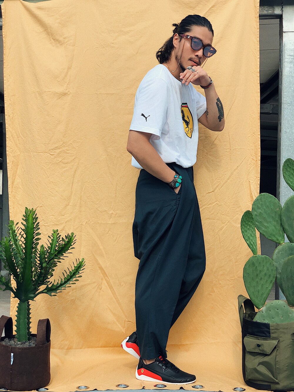 林育準🇹🇼のTシャツ/カットソー「PUMA プーマ フェラーリ レース ビッグシールド 半袖 Tシャツ+」を使ったコーディネート