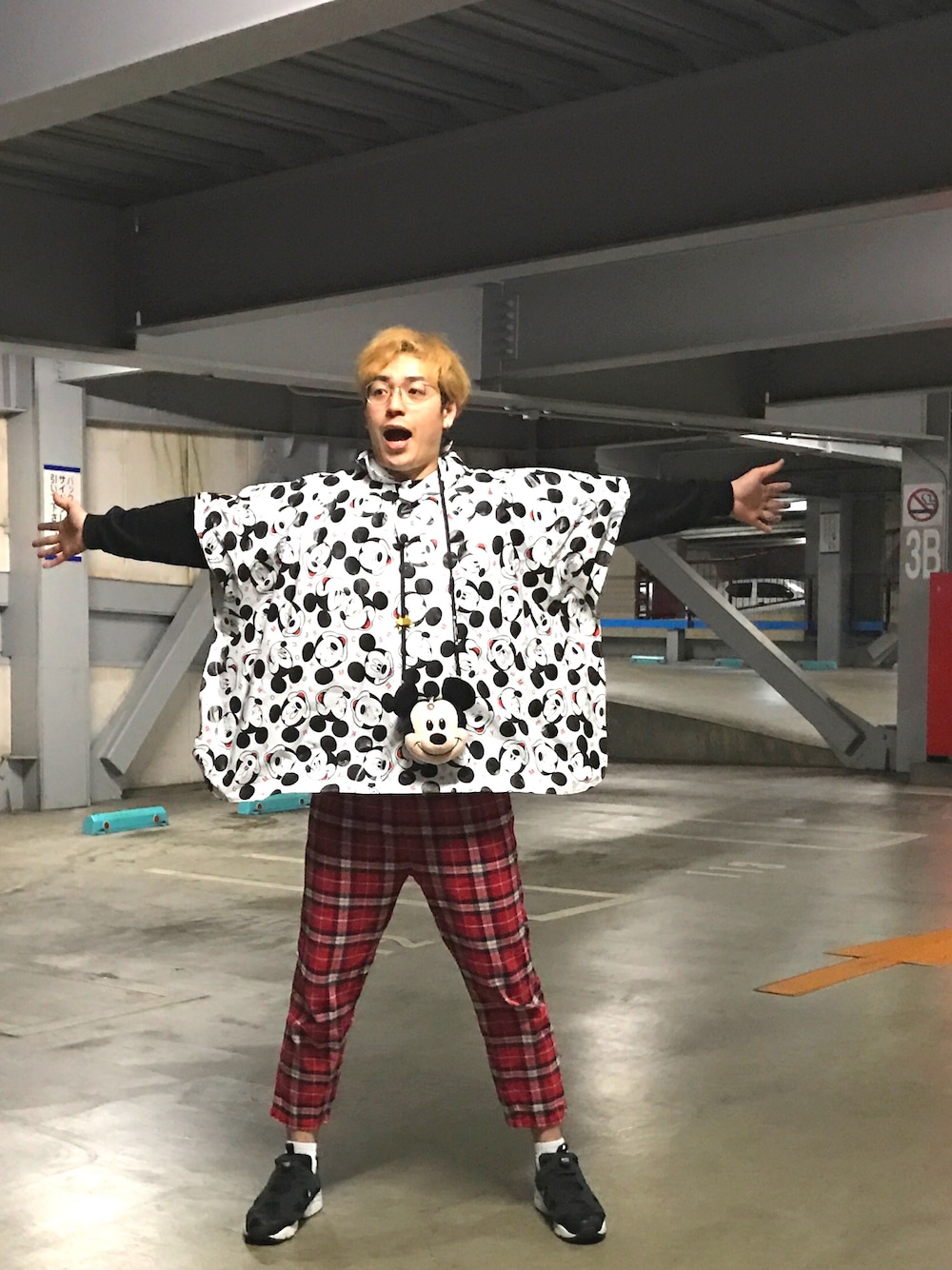 雨降ってたからポンチョ着たよ。 ミッキー大好きコーデ(笑)