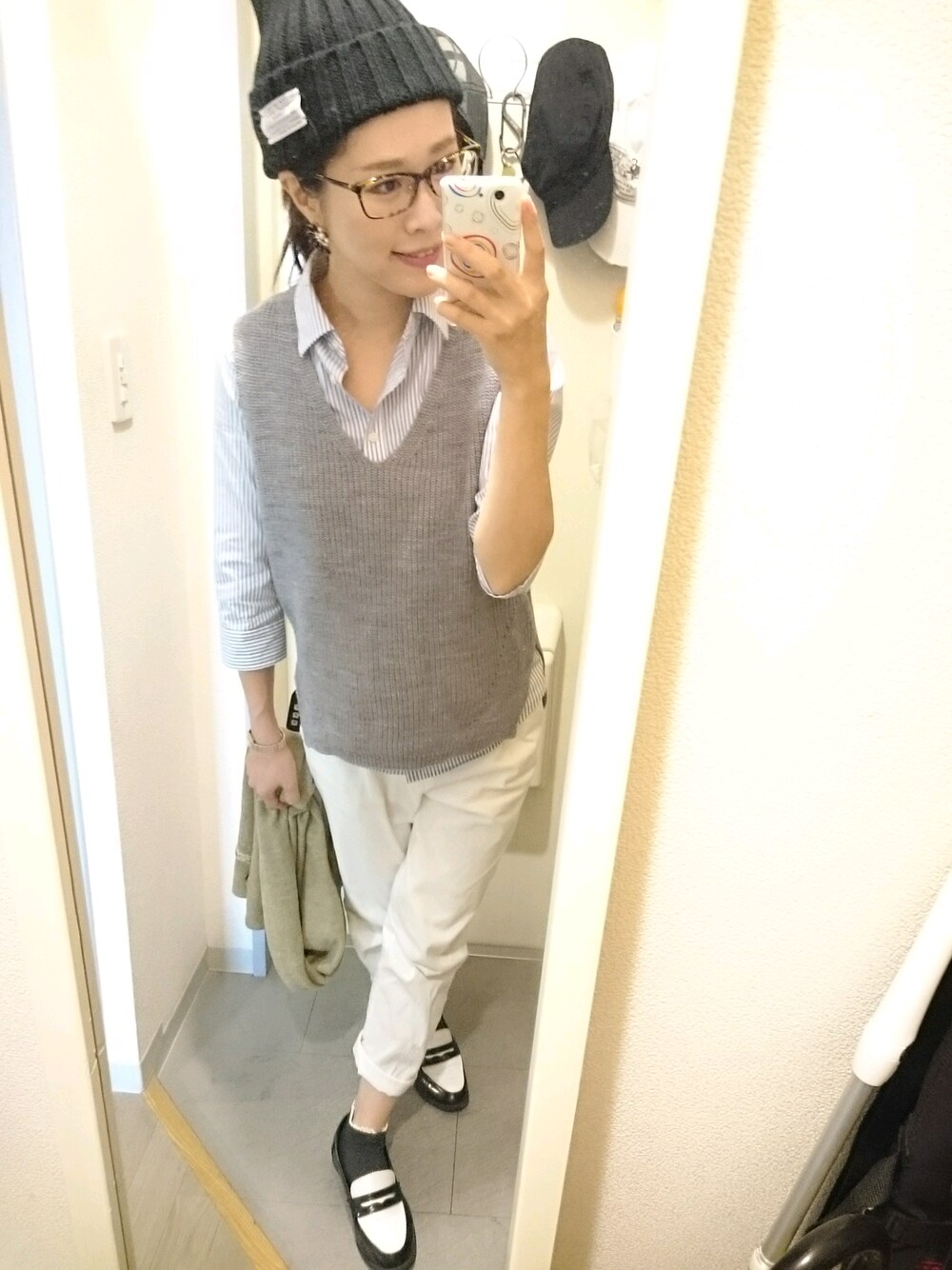プチプラコーデ。 カジュアルをシャツでちょっときれいめに。 雨の日は黒を着ないのがプチモットー(笑) 娘のワクチン接種に行って来ました。 デコだしスタイルが楽すぎて帽子かヘアバンが欠かせません。