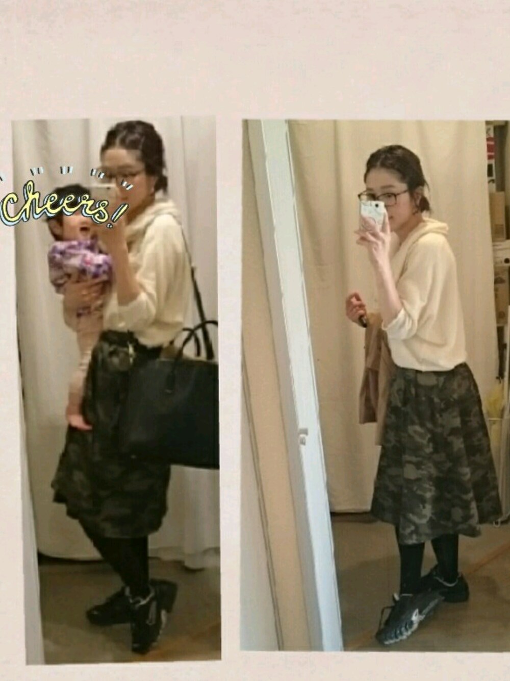 迷彩に黒ばっか合わせていたので、たまには白でやさしく。 かなり前のniko andのニットです。 スニーカー楽ですね。
