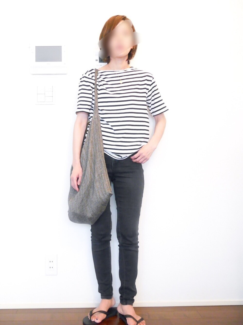 なんのひねりもないけど、安定のモノトーンボーダーコーデ!