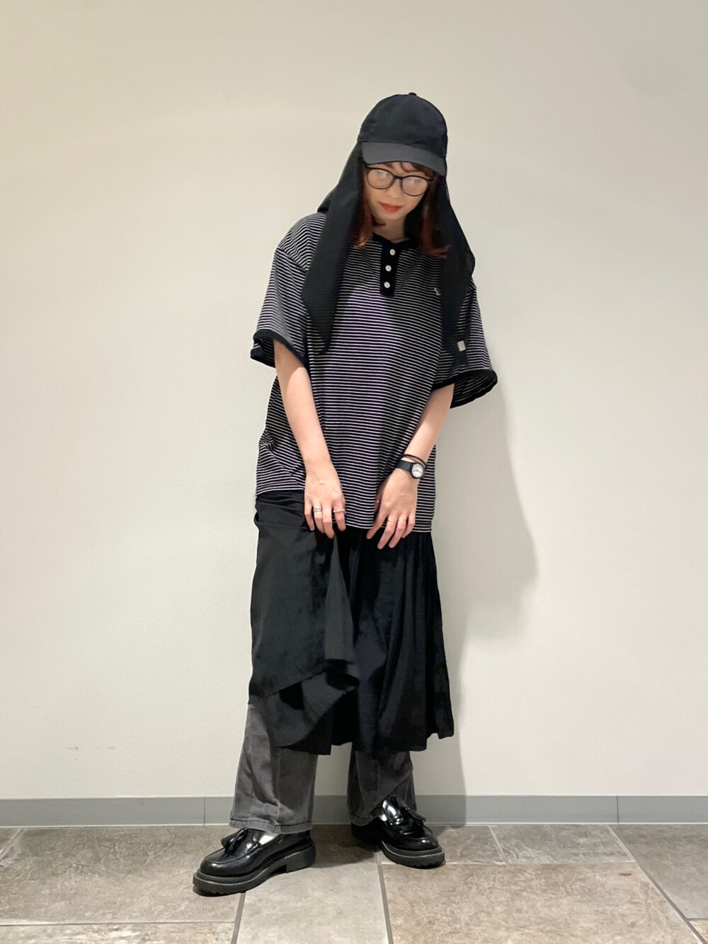 チャコ(OVERRIDEソラリアプラザ)のキャップ「OVERRIDE BREATHABLE REC SCARF CAP SG / オーバーライド」を使ったコーディネート