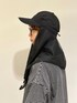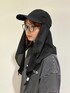 スカーフキャップで夏コーデ! 撥水ナイロン生地のキャップに、メッシュのスカーフが縫い付けられてたトレンド感のあるデザイン。 キャップとスカーフの内側は接触冷感になっており、涼しく蒸れにくいです! バイザーとスベリは吸水速乾仕様。 暑がりさんにもオススメなデザイン日除けキャップです◎ コーデはモノトーンで統一してモードな雰囲気に。 普段使いはもちろん、アウトドアシーンやフェスでも大活躍間違いなしです!
