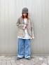 店頭で大人気のニットハット! ざっくりとした編み感とルーズなかぶり心地がたまらなく可愛い、、 ジャケット+デニムのオーバーサイズなコーデにゆるっと合わせてみました。 ユニセックスでかぶれますよ〜◎